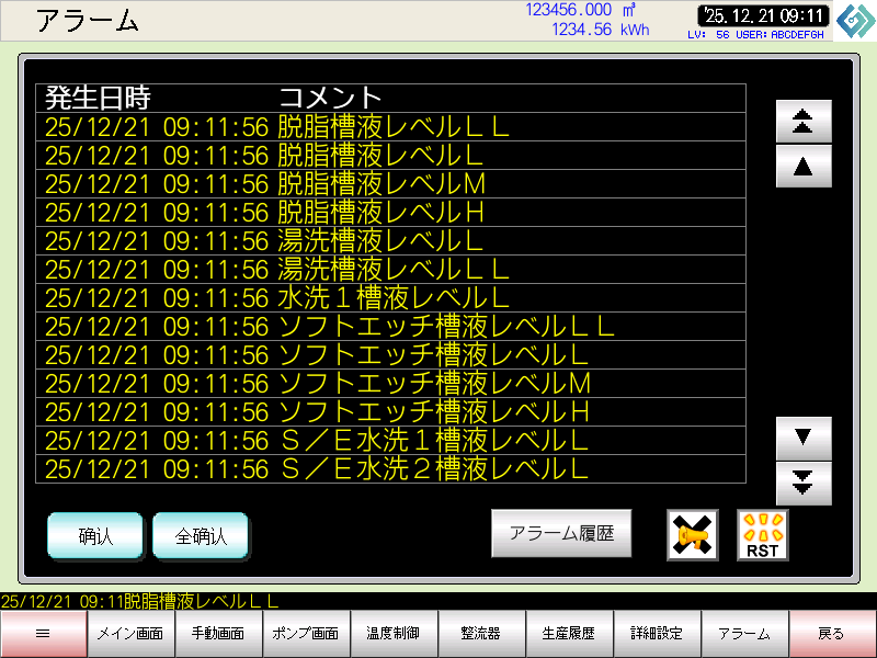 異常の発生履歴などHMIから確認が可能です