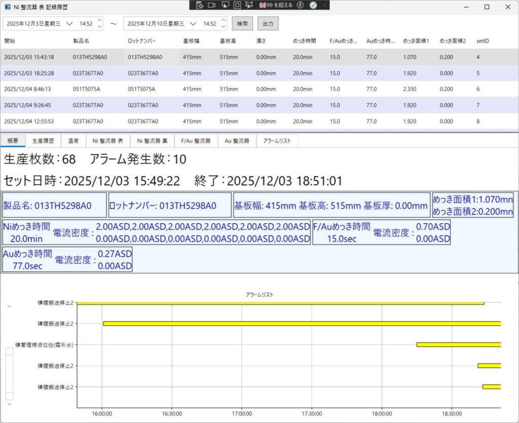 日付選択を使って過去の履歴が検索可能です。